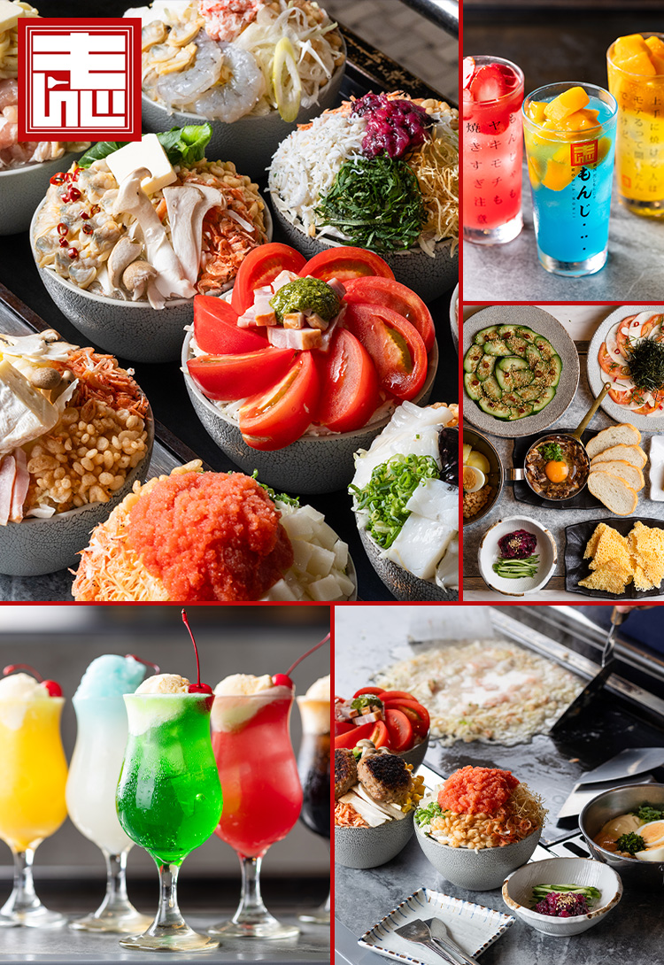 平日昼限定♪名物だしもんじゃやお好み焼きなど好きなだけ楽しめる映え&満腹必至の120分食べ放題コースがお得!忘年会や新年会などの各種会社宴会、女子会や推し会などの集まり、学校や仕事終わり、ショッピング帰りなど普段利用にも嬉しい充実の飲み放題も要チェックです。